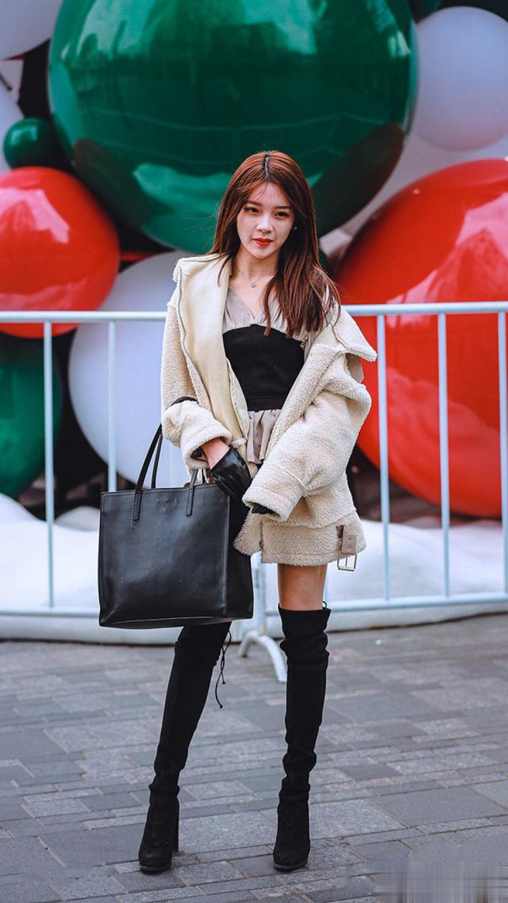 再配上那双过膝靴,如同骑士的战靴,迈出的每一步都坚定有力。靴筒紧紧包裹着修长的双腿,线条流畅而优美,不仅抵御了冬日的严寒,更增添了几分性感的韵味。行走间,靴跟与地面碰撞出清脆的声响,仿佛是自信的鼓点,节奏明快而有力。